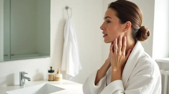 L’application technique compte : mouvements ascendants du décolleté vers le menton pour ne pas étirer la peau vers le bas. Les actifs tenseurs (peptides, rétinol à faible dose) peuvent être intégrés progressivement, mais avec prudence : la peau du cou est plus sensible que celle du visage. Commencez deux fois par semaine et augmentez graduellement selon la tolérance.